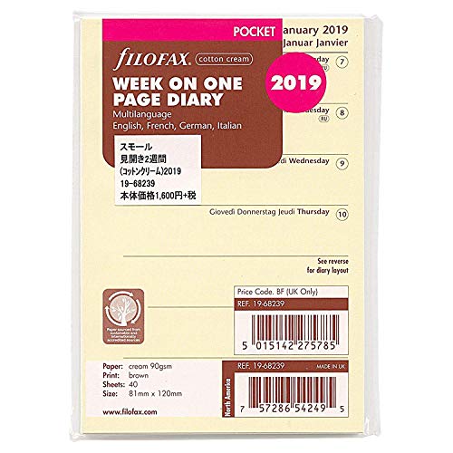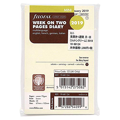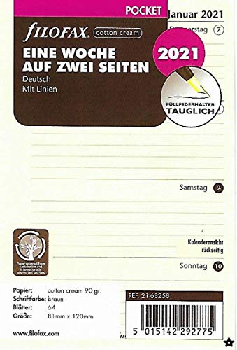 Filofax 2021 kalender pocket A7 kalendarium 1 vecka 2 sidor bomullskräm inlägg veckoplanerare 21-68258