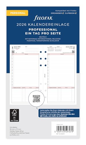 Filofax Kalender Personal Prof.1 dag per sida (tyska) 2026