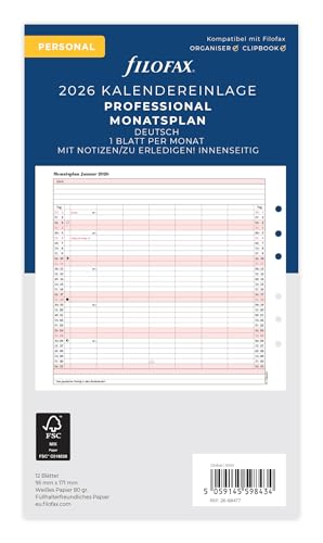 Filofax Kalender Personal Prof.Månadsutrymme. (tyska) 2026