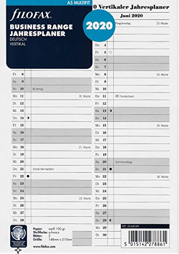 Filofax Kalender A5 Multi 1 vecka på 2 sidor (tyska) 2026