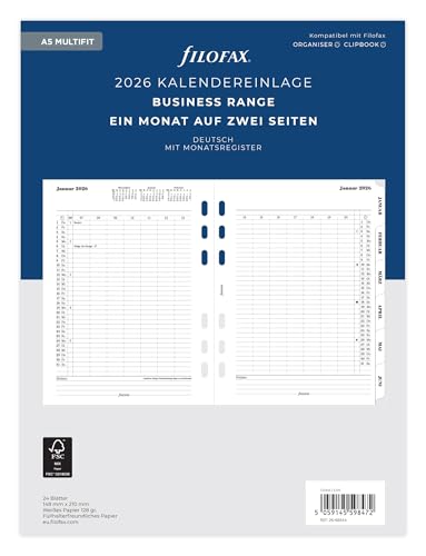 Filofax Kalender A5 Multi 1 månad på 2 sidor tabbed (tyska) 2026