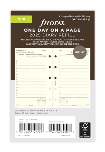 Diary Refill Week on two pages Mini 2025 English Filofax
