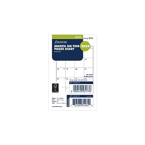 Filofax Mini månad på två sidor engelsk 2024 dagbok, vit