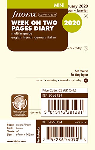Filofax kalenderinlägg mini 1 vecka på 2 sidor bomullskräm (flerspråkig) 2020
