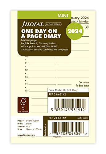 Filofax Mini dag per sida bomullskräm 4 språk 2024 dagbok