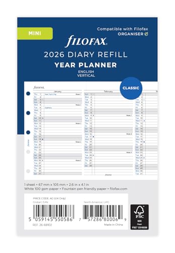 Filofax Mini årsplats. vertikal (tyska) 2026