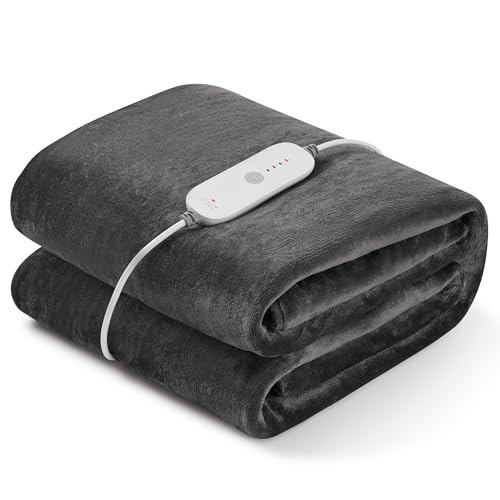 CURECURE Stor värmande filt, snabb uppvärmning Stor värmande filt i mjuk flanell, automatisk avstängning, värmeutrustning, maskintvättbar Mörkgrå (mörkgrå, 150x200)