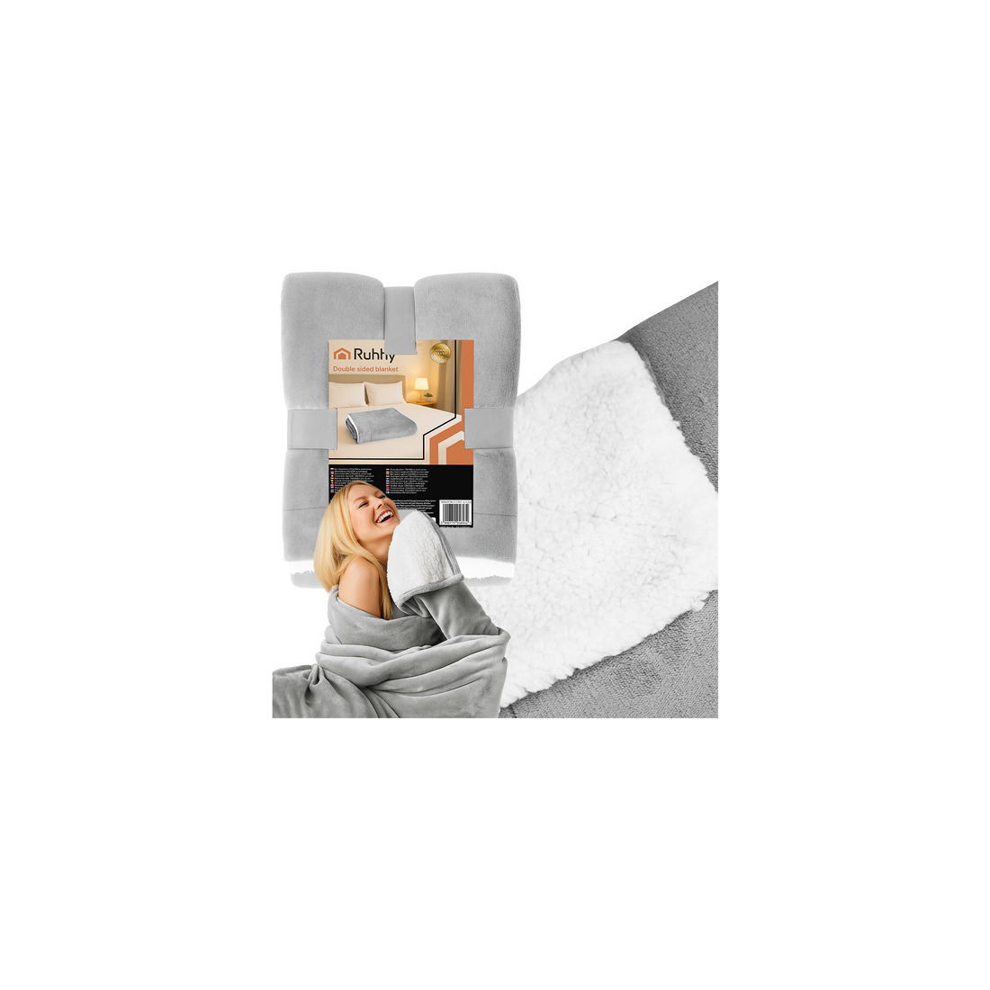 Dubbelsidig filt 150x200cm, ljusgrå, mysig och tvättbar