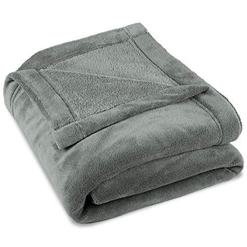 Sängsäck Vändbar flanell/Sherpa filt 150x200cm - Extra mjuk 100% mikrofiber 90 säng filt - Grå plysch filt