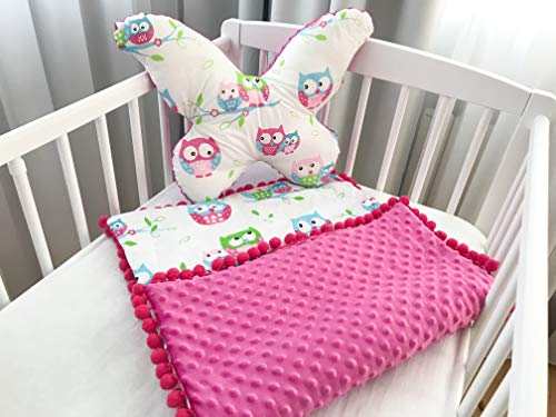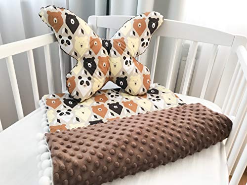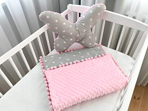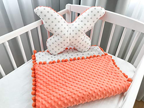 KOSPU Babyfilt, gosig filt, krypande filt, 100% bomull och plysch Minky (50 x 75 cm) + stor kudde fjäril