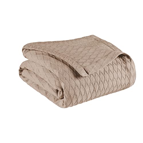 Superior Termisk filt i 100% bomull, mjuk och andningsbar bomull för alla årstider, sängfilt och överdimensionerad filt med lyxig diamantväv – full/drottning storlek, kaki