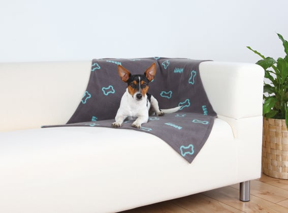 Trixie Beany Fleece Filt 100x70cm Grå Med Benmotiv