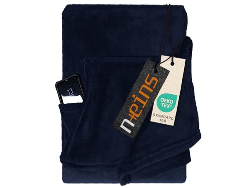 CelinaTex TV-filt med ärmar och fotficka, fluffig gosig filt, 150 x 180 cm, blå, mikrofiber, fleece, mjuk OEKO-TEX