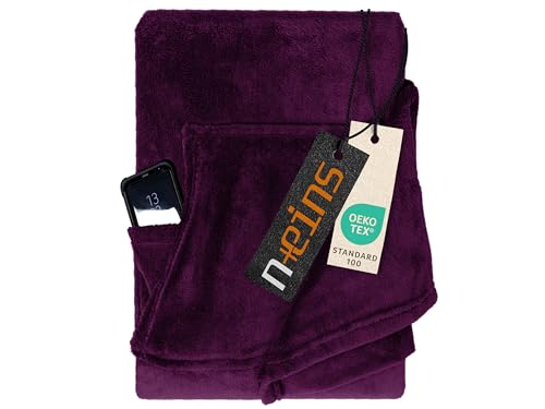 CelinaTex TV-filt med ärmar och fotficka, fluffig gosig filt, 150 x 180 cm, lila mikrofiber, fleece, mjuk OEKO-TEX