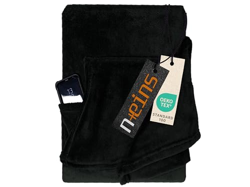 Gözze - Premium gosig filt med ärmar och bröstficka, 150 x 240 cm – svart