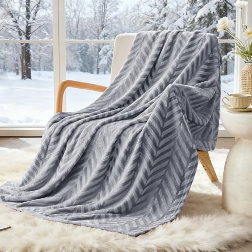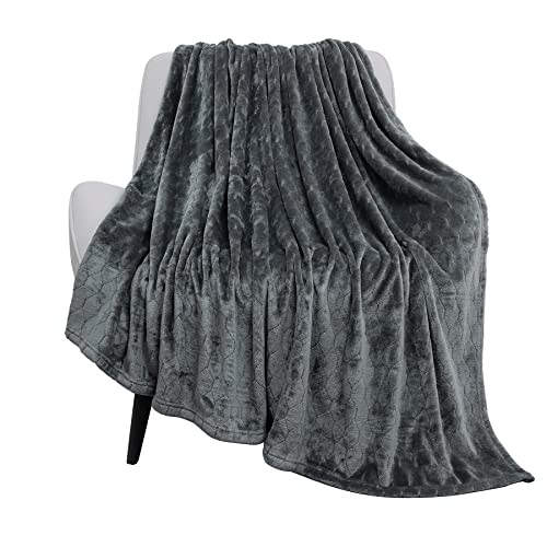 TOONOW Fleecefilt texturerad luddig plysch filt 127 cm x 152 cm, supermjuk fluffig sängfilt geometriskt mönster bekväm mikrofiber flanell filtar för soffa, säng, soffa, mörkgrå