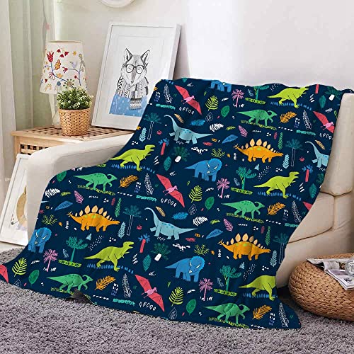 Hoimlm Dinosaurie gosig filt, mjuk och varm fluffig plysch dino-mönster filt, barn gosig filt, flanell fleecefilt TV-filt, mikrofiber soffa filt (150 x 200 cm, blå dinosaurie)
