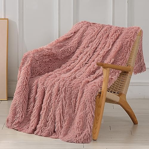 Tuddrom Dekorativ extra mjuk luddig fuskpäls filt 127 cm x 152 cm, solid vändbar långt hår lurvig filt, fluffig mysig plysch bekväm mikrofiber fleece filtar för soffa sovrum, persika piska