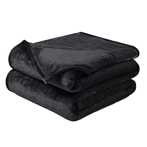 EASELAND Mjuk filt king size varm luddig mikroplysch lätt termisk fleece filtar för bäddsoffa 228 x 258 cm, svart