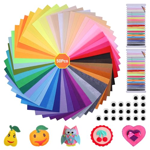 Starvortex 50 st färgat filttyg, A4 filtark för hantverk, hållbara filtfyrkanter 20 cm x 30 cm, regnbågsfiltfyrkanter för hantverk med trådar och dekorögon, gör-det-själv-hantverksmaterial för flicka