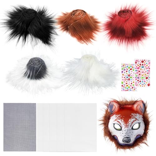 13 st Therian Mask Making Kit - Inkluderar 5 st Faux Päls och Självhäftande Filtark med Ögnät och Ädelsten Klistermärke för Kattmask
