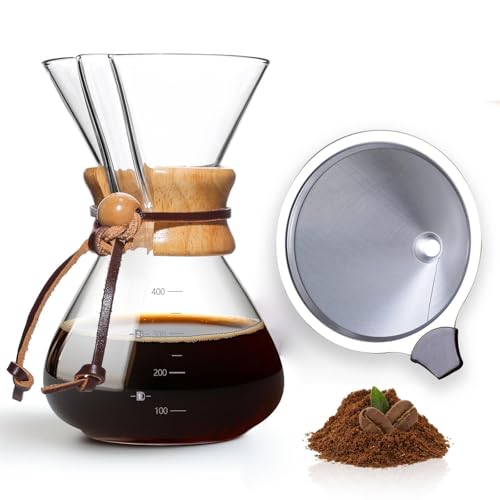 Coffee Gator Pour Over kaffebryggare – mer smak med ett papperslöst rostfritt stål filter och en glaskaraff – manuell droppkaffebryggare – 400 ml