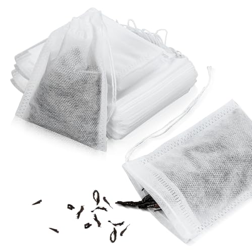 Yuanchu 30 stycken kryddpåsar, kryddpåsar för tillagning 8 x 10 cm bomullspåse med dragsko miljövänlig återanvändbar tepåse muslinpåse för te kaffe filter kryddor
