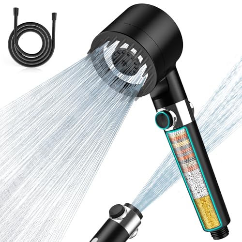 Cobbe Filter duschhuvud med slang, högt tryck handdusch med 20-stegs filtrering, duschmunstycke vattenbesparande med 6 stråltyper, regndusch tryckhöjande sparduschhuvud för hårt vatten