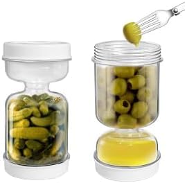 Flip glasburk, gurkburk att vända om, glas-kimchi-behållare med filter, lock och vikbar gaffel, våt och torr, för vinäger gurka oliv kimchi Jalapenos