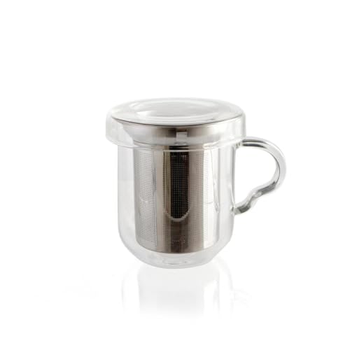 Creano Allt-i-ett-tekopp i borsilikatglas med filter i rostfritt stål och lock 400 ml – uppsättning med 1