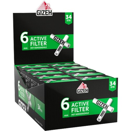 Gizeh Active Tips aktivt kolfilter med keramiska lock – 10 x 34 filter, silver, smal