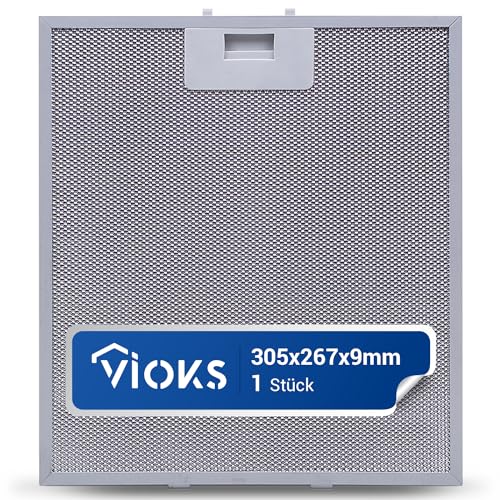 VIOKS filter köksfläkt 305 x 267 x 9 mm ersättning för AEG 405525042/9 Elica GRI0009219A KIT0010805 – fettfilter köksfläkt metall/metallfilter spisfläkt Whirlpool Elica AEG Juno
