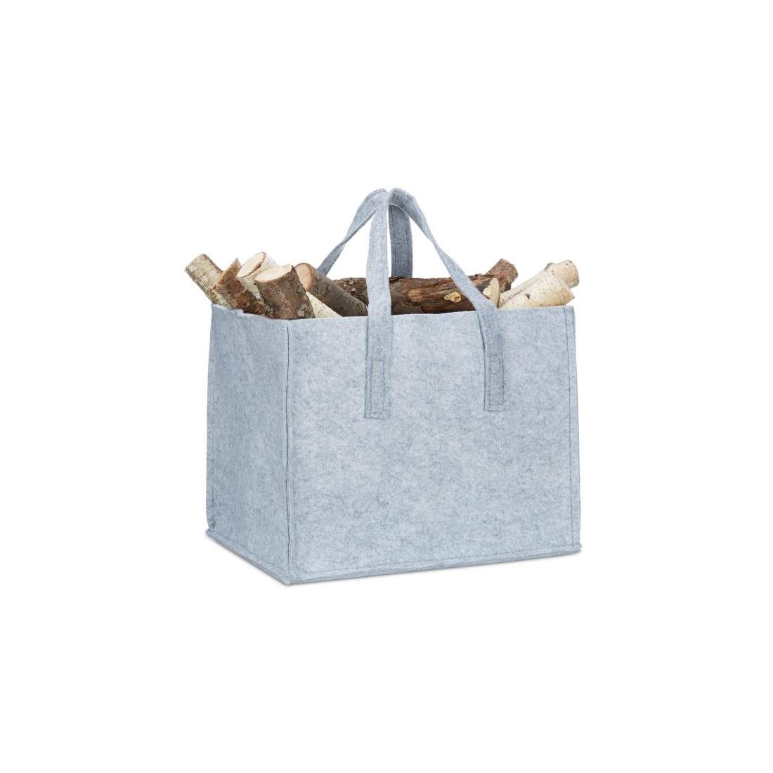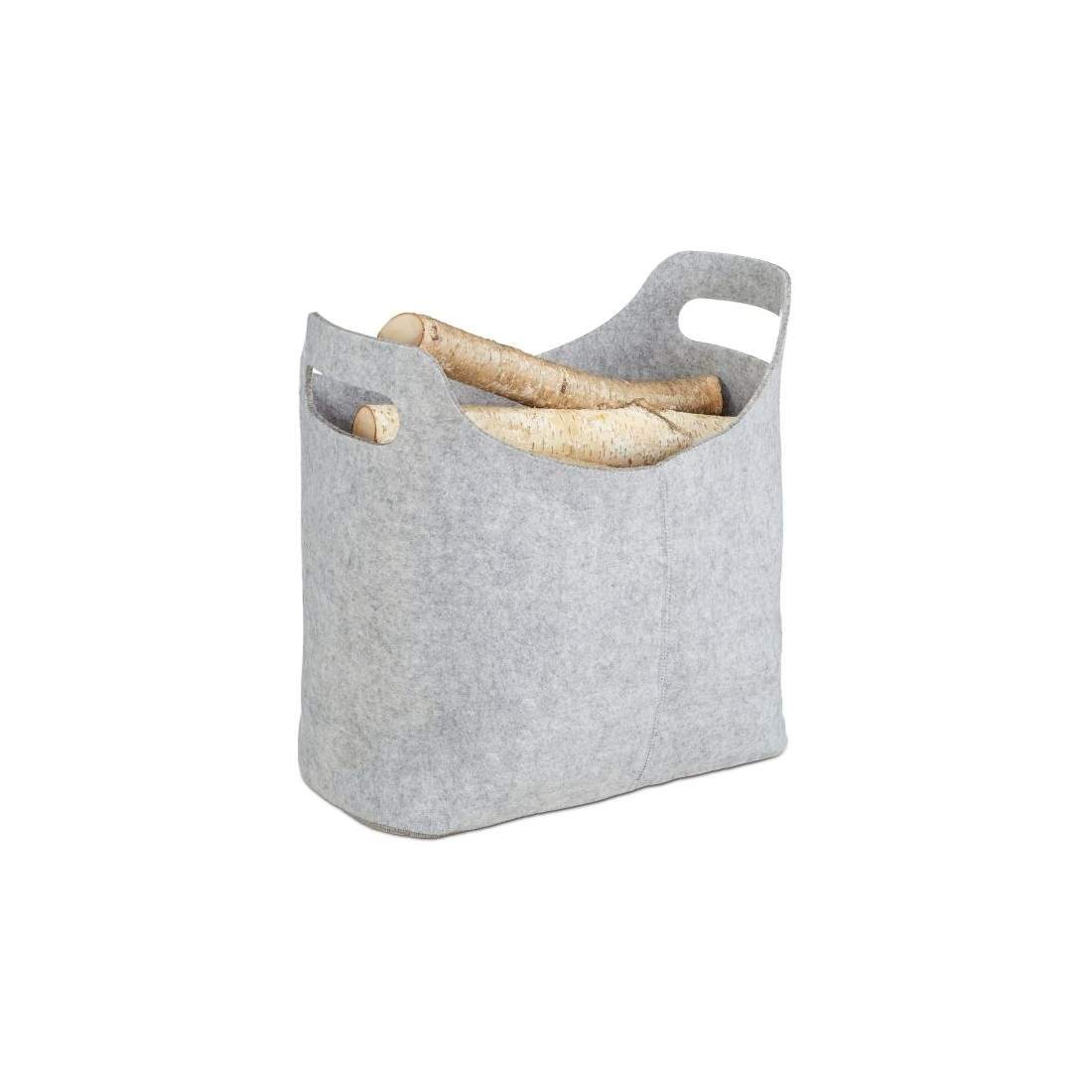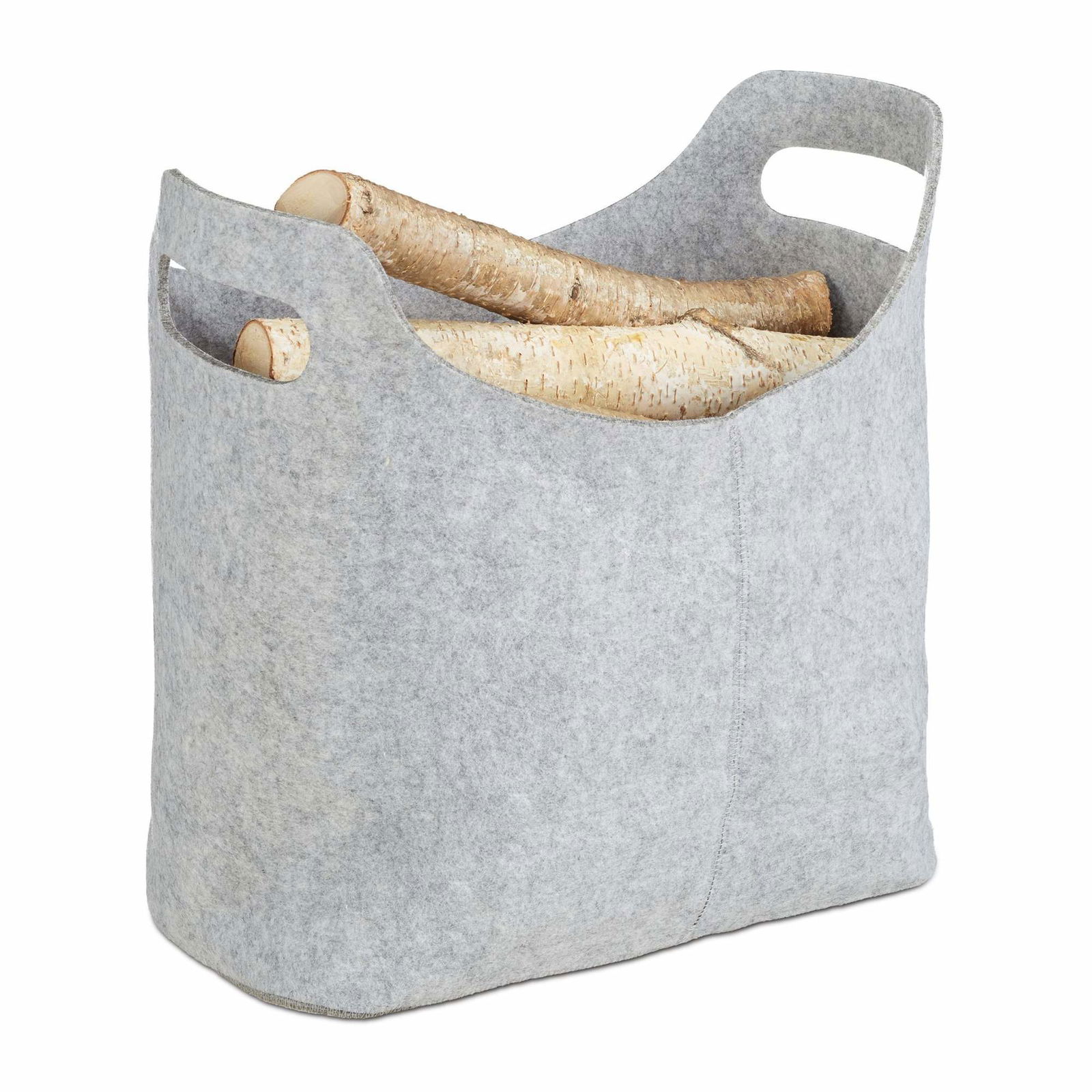 Relaxdays Vedkorg i filt, 50 l, vedkorg med bärhandtag, HBT: 40 x 51 x 32 cm, filtkorg för ved, inuti, grå
