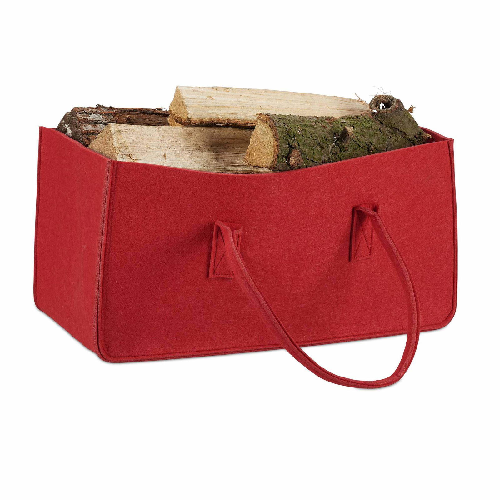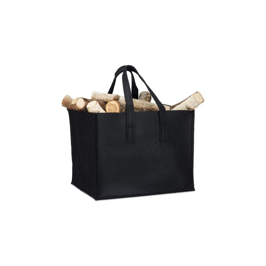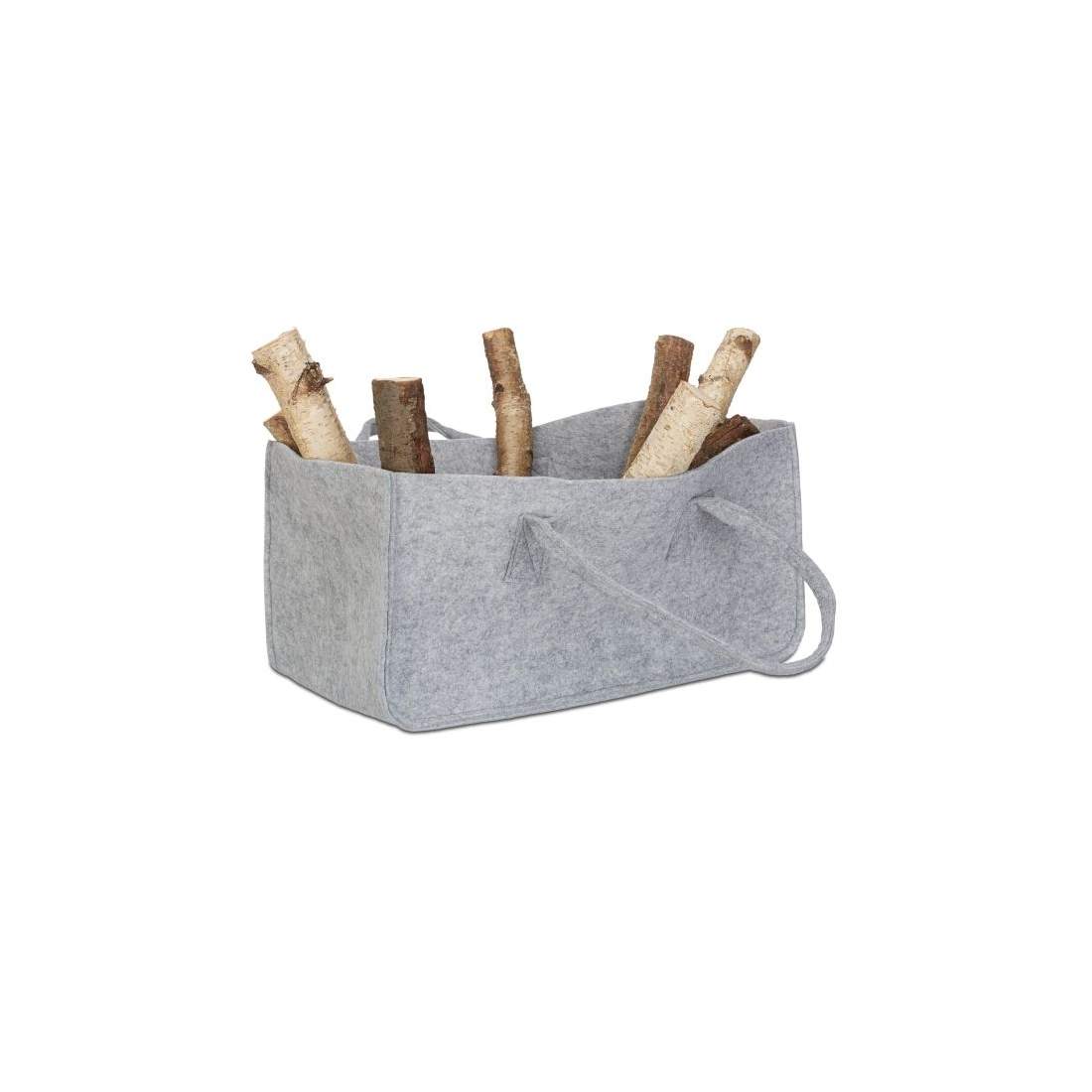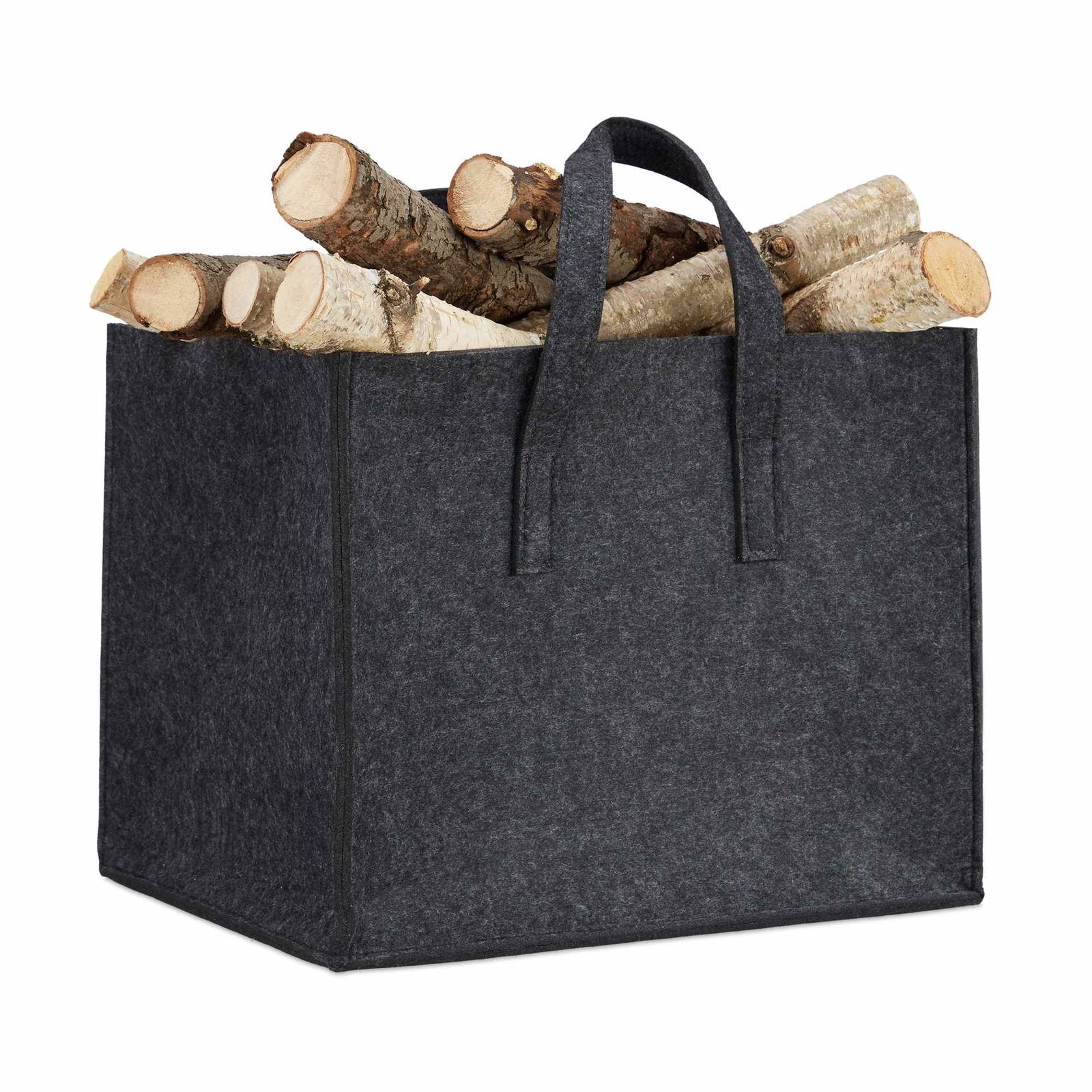 Relaxdays Vedkorg i filt, 50 l, vedkorg med bärhandtag, HBT: 40 x 51 x 32 cm, filtkorg för ved, inuti, grå