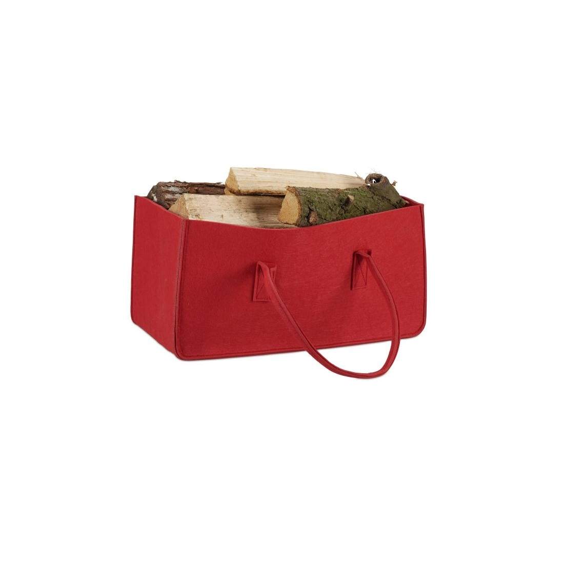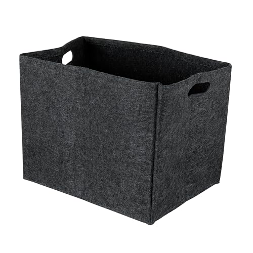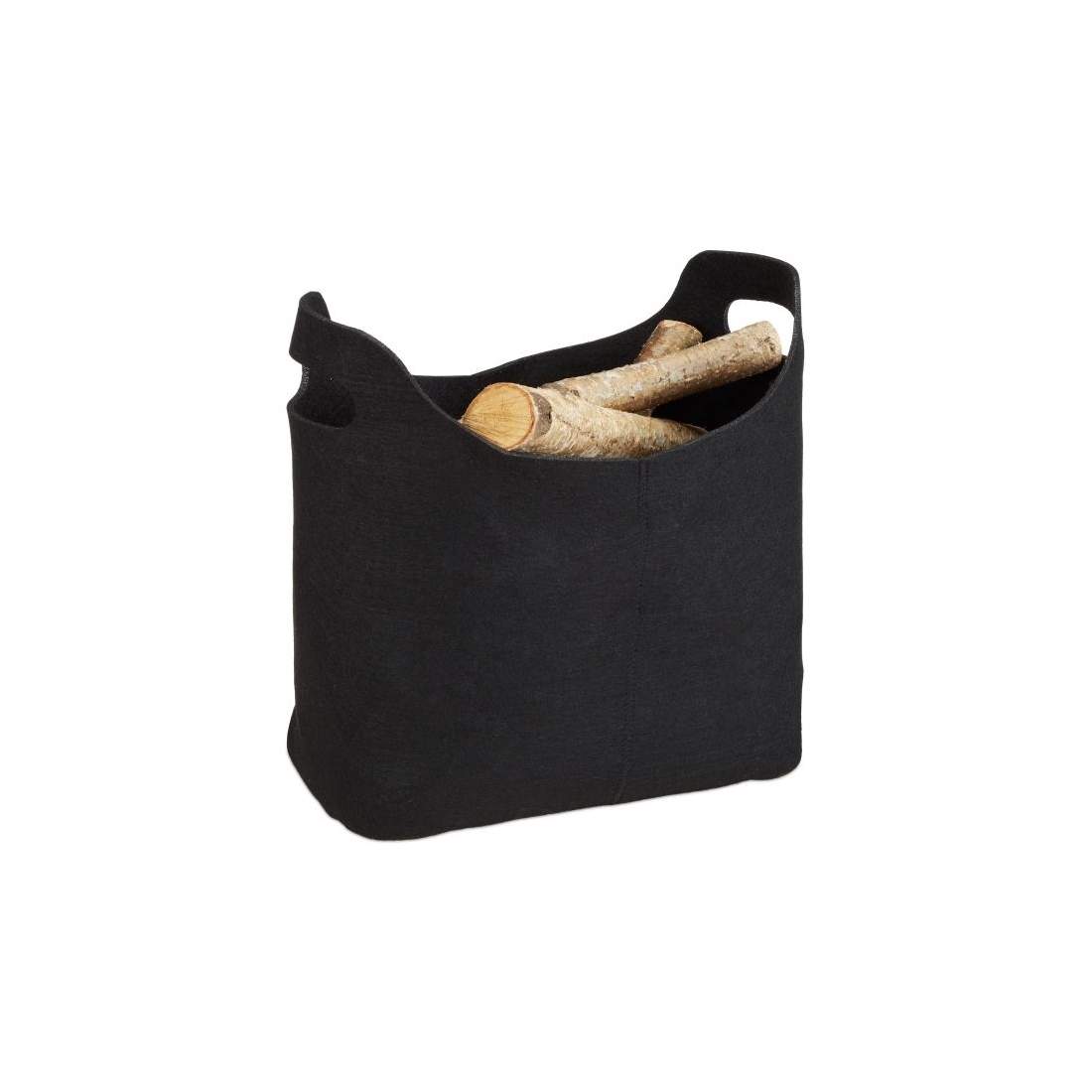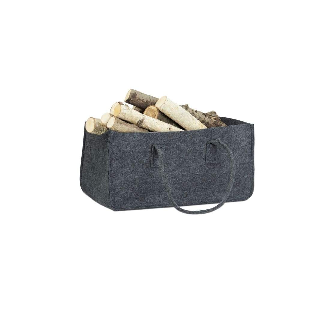 Relaxdays Vedkorg av filt, H x B x D: 39,5 x 40 x 23 cm, 2 handtag, vikbar, tidningshållare, filtkorg, antracit