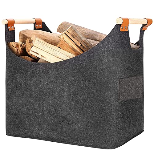 Veckkorg, CoatCool stor filtkorg med 2 handtag, hopfällbar vedkorg, filtväska för öppen spis, trä, tidningar, leksak 55 x 32 x 40 cm (mörkgrå)