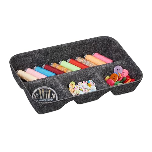 Relaxdays Lådor Organizer filt, organisationssystem skrivbord, HBT 5,5 x 29,5 x 19 cm, 4 fack, filtkorg, mörkgrå