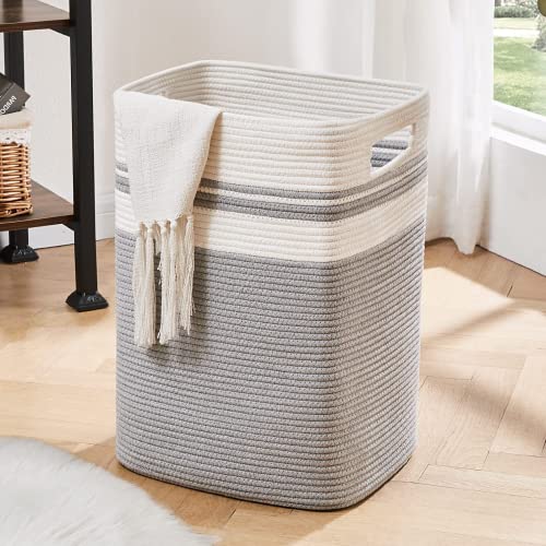 OIAHOMY Tvättkorg - tvättkorg, hög bomullskorg med handtag, dekorativ filtkorg för vardagsrum, hopfällbar stor korg för leksaker, kuddar, kläder-40 x 33 x 56 cm - grå