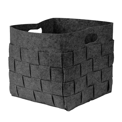 Relaxdays Filtkorg flätad, vikbar förvaringskorg filt, hyllkorg med handtag, HBLT: 29 x 31 x 31 cm, mörkgrå, 1 st