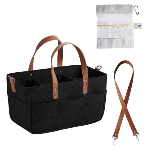ACESOME Filtväska med fack, bestickväska, filtkorg förvaringslåda med utbytbar, skötarrangör hemma för picknick, resor, shopping, 38 x 23 x 18 cm (svart)