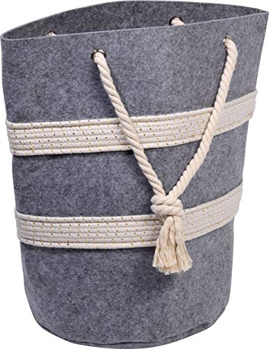 dobar® 87802e Filtkorg med bärhandtag | filttunna för ved/tidskrifter/tvätt | filtväska | förvaringsväska | 40 x 40 x 60 cm | grå/vit