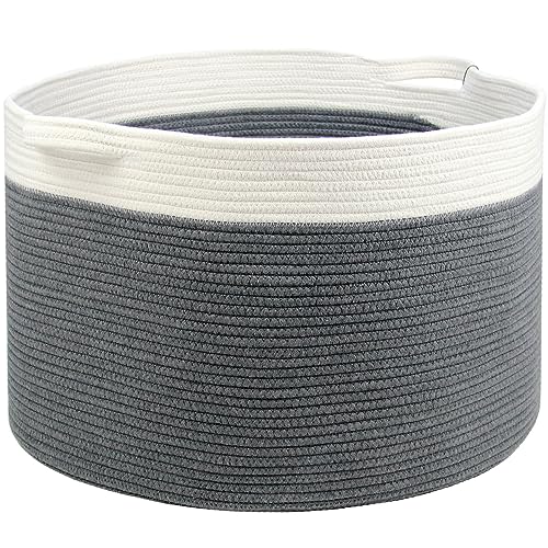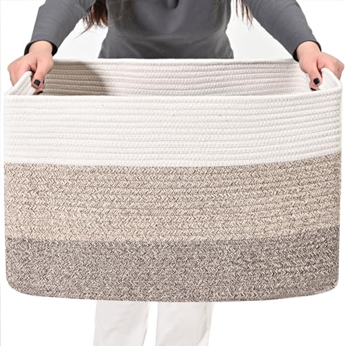 XXXXL Tvättbar filtkorg, jumbo, 61 cm x 43 cm, extra stor bomullsrepkorg med handtag för filtar, vardagsrum, babyleksaksförvaring