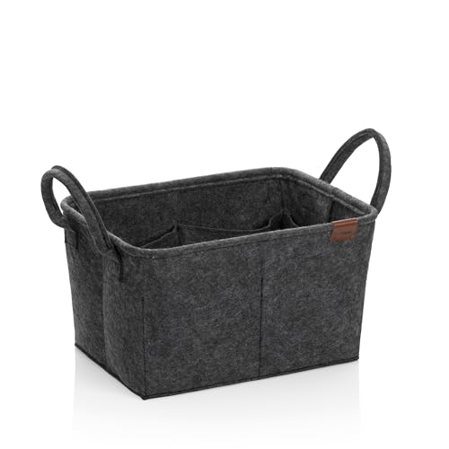 WENKO Filtkorg Bea mörkgrå M, korg med praktiska handtag, 5 l, bomull, grå, 24 x 16 x 16 cm