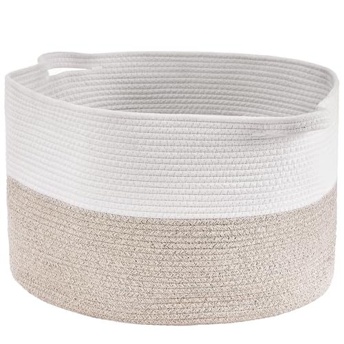 65 L extra stor förvaring bomullsrep filtkorg, hållbar vävd förvaringskorg för tvätt vardagsrum sovrum, rektangel stor korg för sko leksakshandduk, vit och khaki, 57 x 38 x 30 cm
