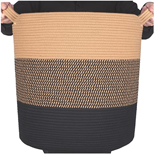 Casaphoria XXXXLarge Bomullsrep filtkorg 56 cm x 56 cm x 40 cm vävd tvättkorg tvättkorgar förvaringskorg för handduk, blöja, tvättkorg (56 cm 22 tum 16 tum svart) (paket med 1) (MB2021045)