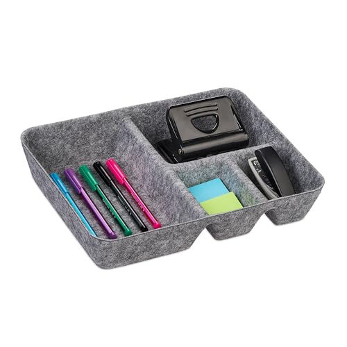 Relaxdays Lådor Organizer filt, organisationssystem skrivbord, H x B x D: 6,5 x 32 x 25 cm, 4 fack, filtkorg, ljusgrå