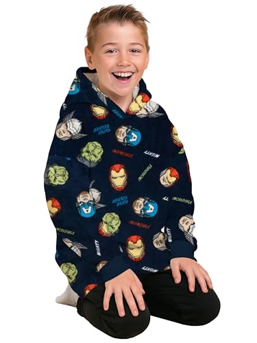 Marvel The Avengers Oversize Cozy huvtröja för pojkar – överdimensionerad gosig tröja, fluffig filttröja, blå
