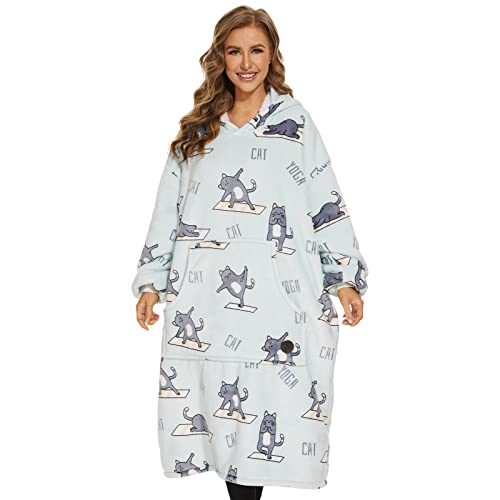 Kato Tirrinia Överdimensionerad varm huvtröja/sweatshirtfilt av mjuk flanell, bekväm filttröja för kvinnor, mysig present, filt för vuxna, män, kvinnor och tonåringar, askgrå