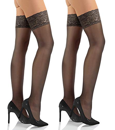 Sesto Senso 2 par Hållstrumpor Med Spets 15 DEN Fina Strumpor Kvinnor 1/2 XS/S Fumo Grafitfärg