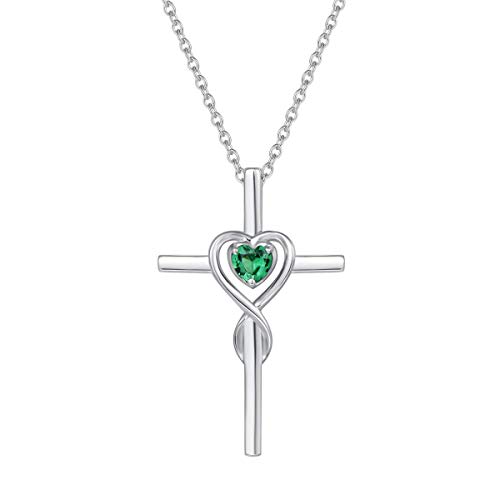 FANCIME 925 sterling silver kors oändlighet hjärta krucifix hänge halsband med skapad/naturlig ädelsten födelsesten fina smycken för kvinnor flickor - kedjelängd: 43 + 5 cm, Vitt guld Sterlingsilver,